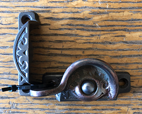 Antique decorative cast iron & bronze window sash lock. This item is not a reproduction. It has been cleaned and buffed, and a clear spray lacquer has been applied to protect the finish. We strive to provide accurate images of our products, however, due to variances in individual monitor and electronic device settings, colors may be slightly different.