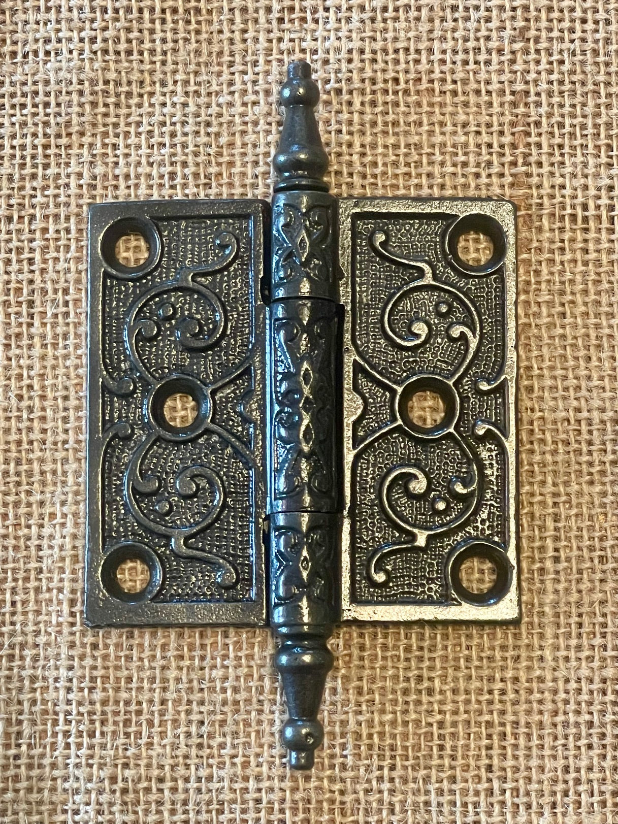 Antique Decorative Cast Iron Steeple Tip Door Hinge - 3" x 3"