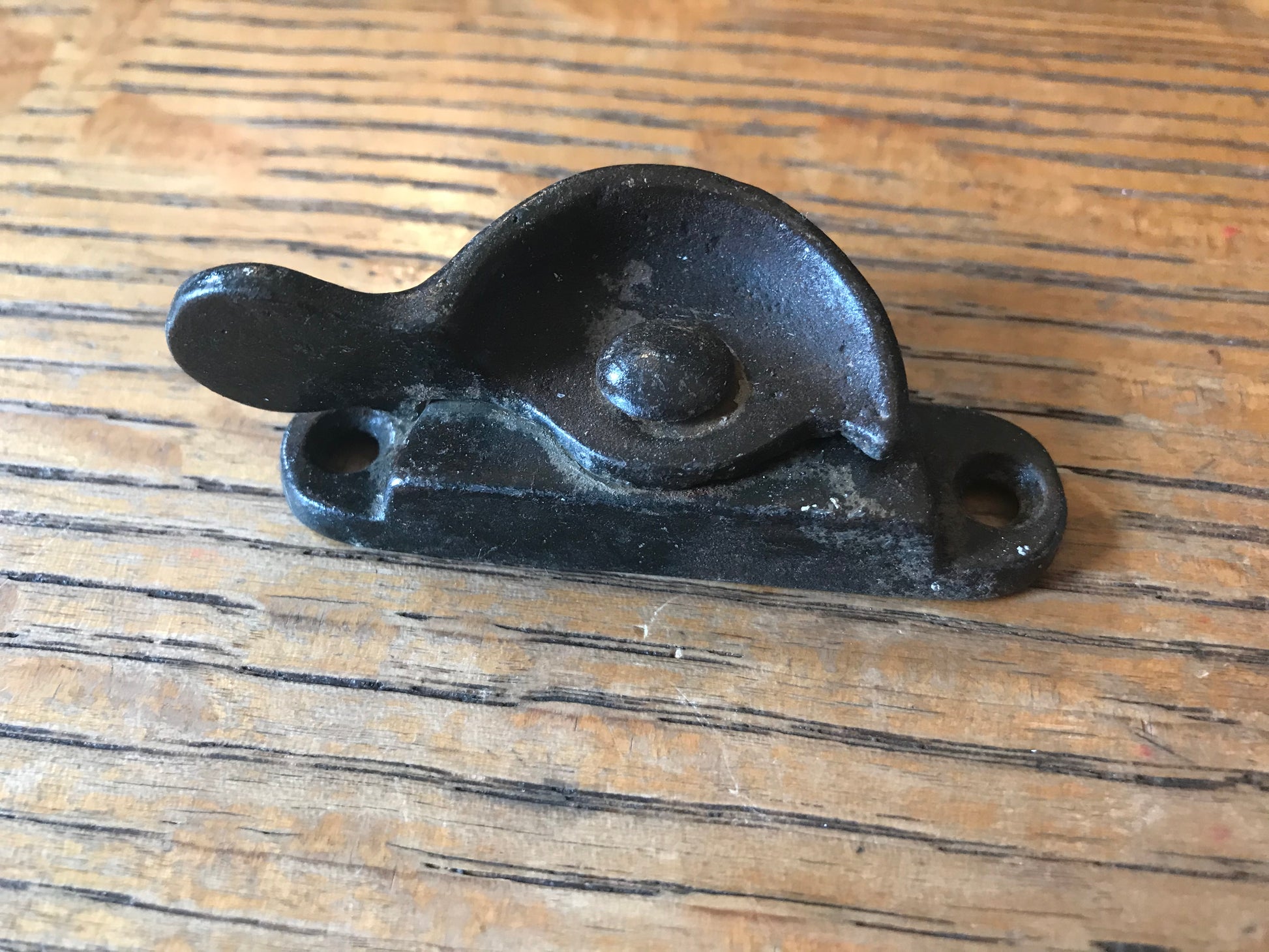 Antique steel window sash lock. This item is not a reproduction. It has been cleaned, buffed and a clear spray lacquer has been applied to protect the finish. We strive to provide accurate images of our products, however, due to variances in individual monitor and electronic device settings, colors may be slightly different.