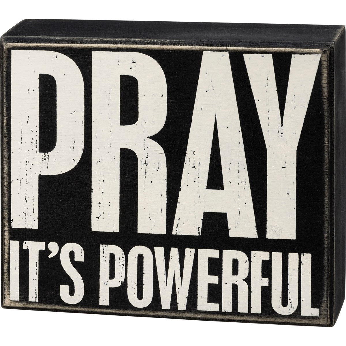 A classic black and white box sign featuring "Pray - It's Powerful" sentiment. Easy to hang or can free-stand alone.