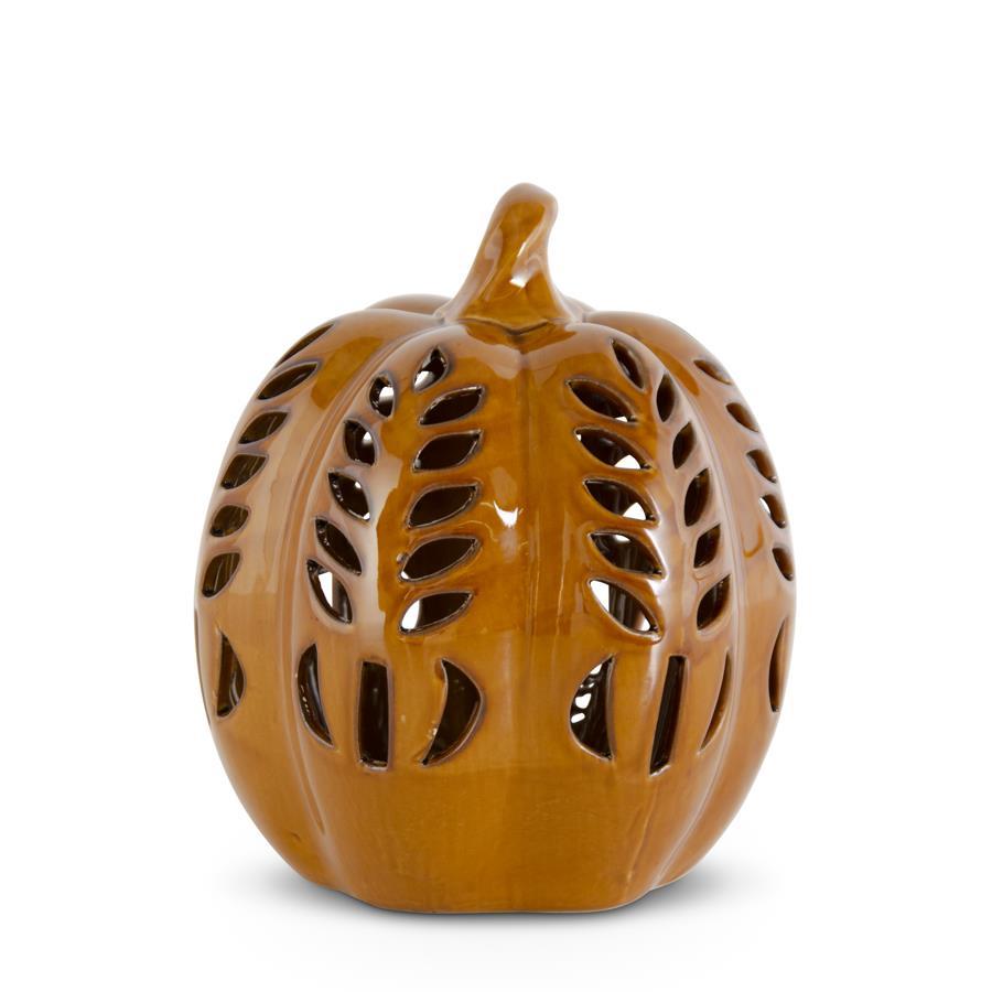 Brown Ceramic LED Cutout Pumpkin With Timer