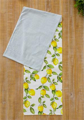 Lemon & Blue Stripe Seersucker Reversible Table Runner