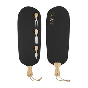 4-piece set. Hand-painted and engraved wood paddle board. Comes with three magnetic serving utensils.