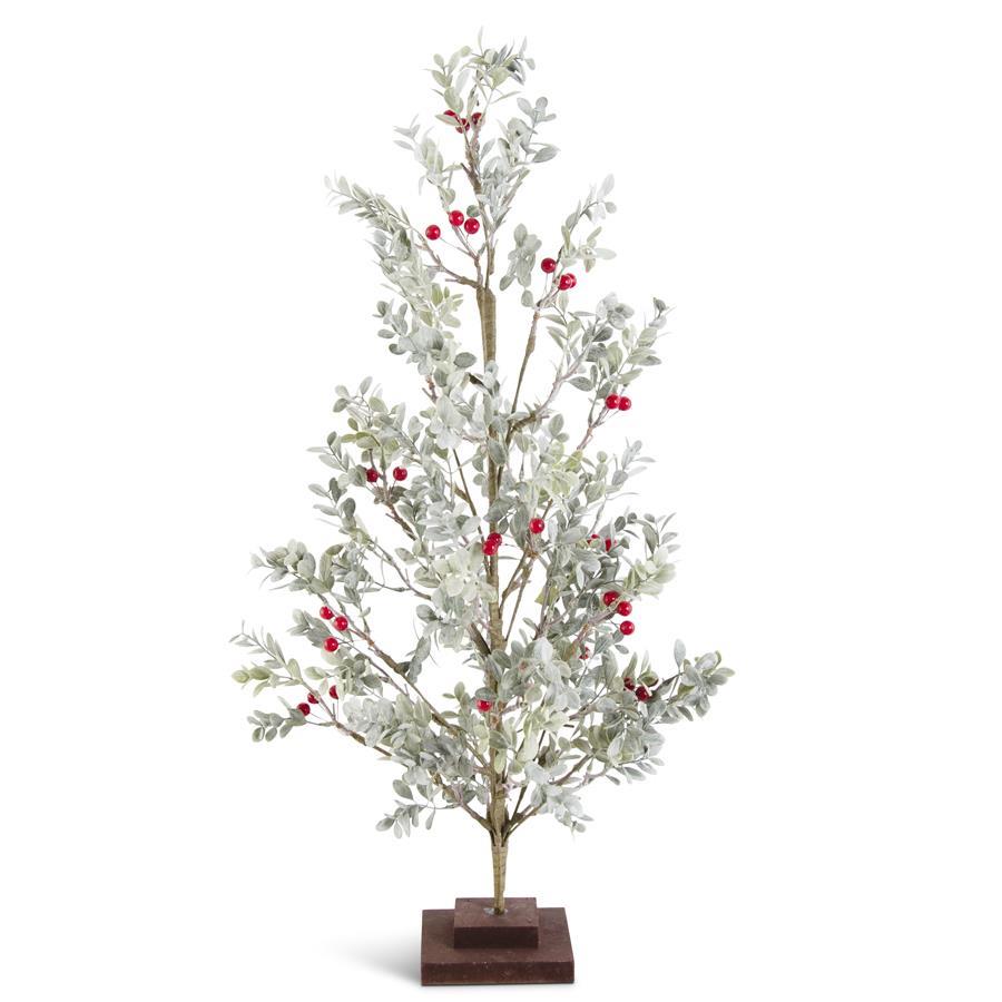 Powdered Boxwood Tree With Red Berries. Available in two sizes. Sold individually.