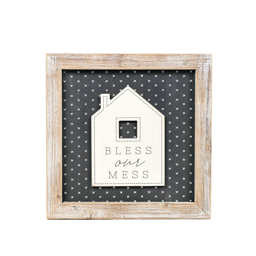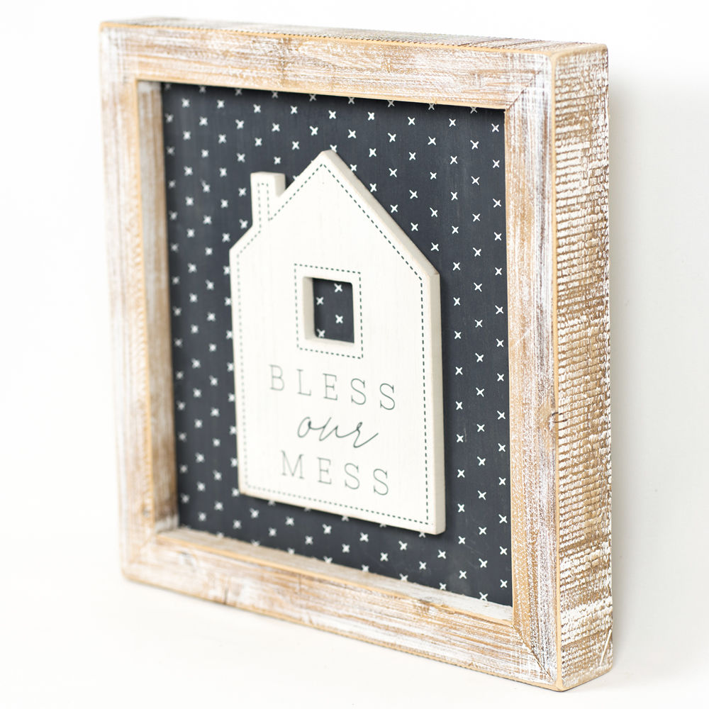 Reversible Bless our Mess/Our Home Doesn't Always Look This Way Framed Sign