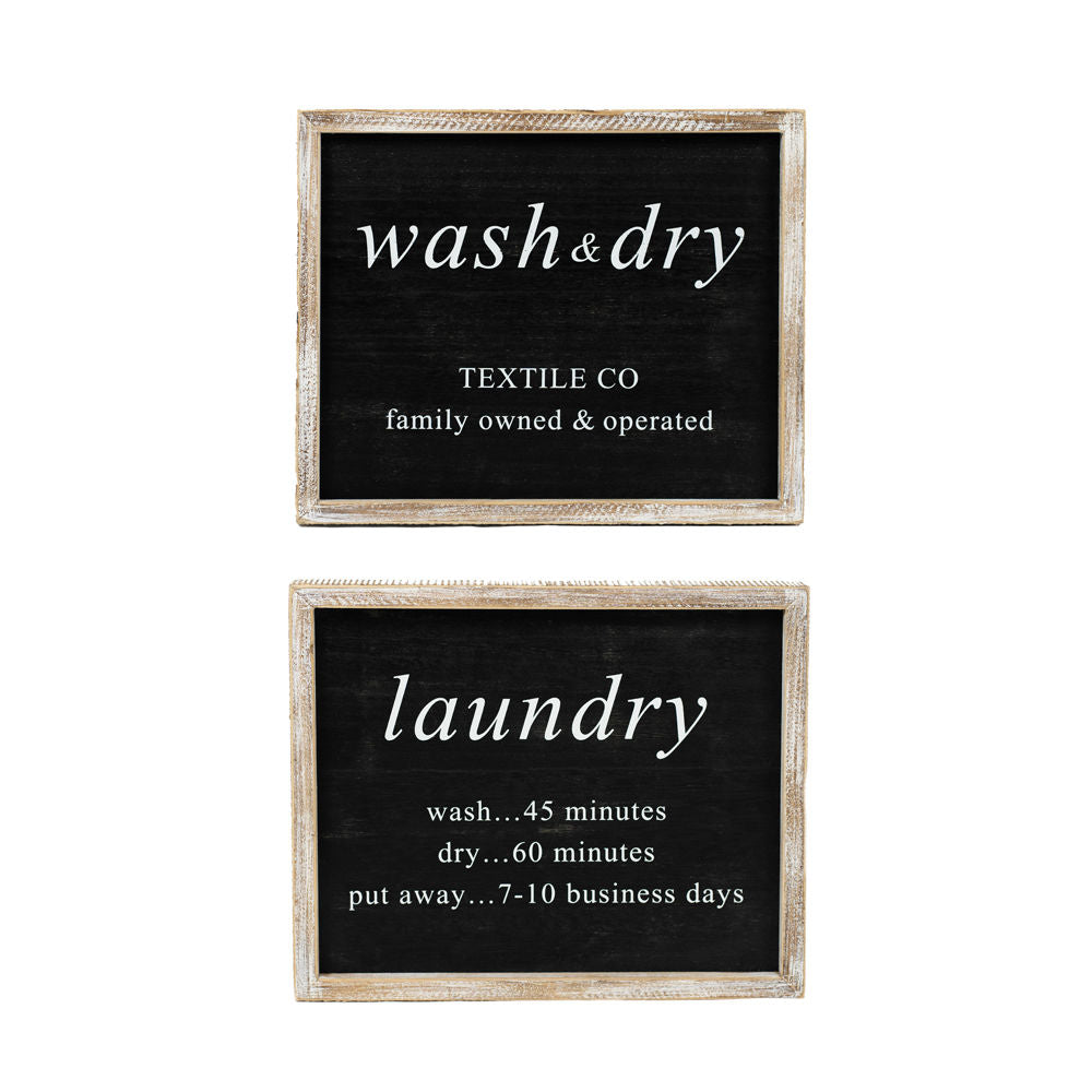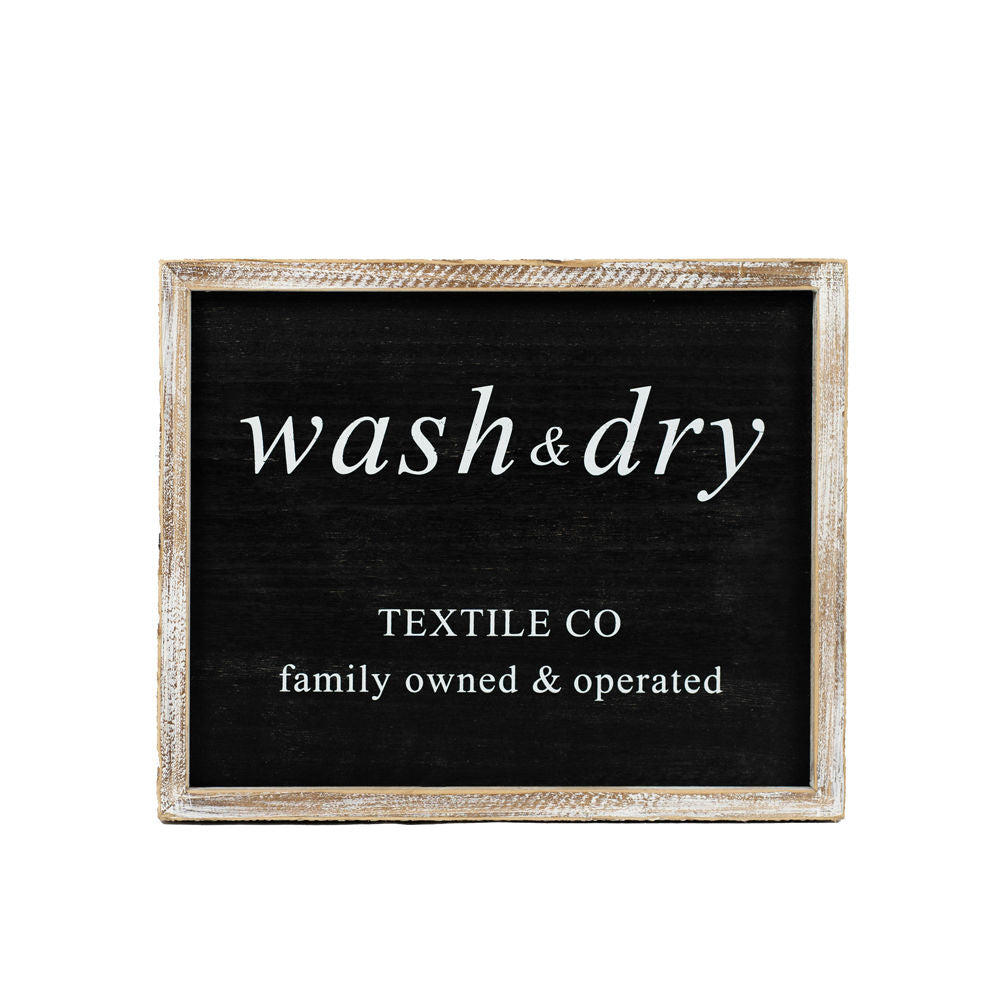 This reversible sign is colored with black and white, making everything more elegant and classy. It is simple, light, and easy to mount. It empowers with statements, "wash & dry TEXTILE CO family owned & operated" on one side, and "laundry wash...45 minutes dry...60 minutes put away...7-10 business days" on the other side.
