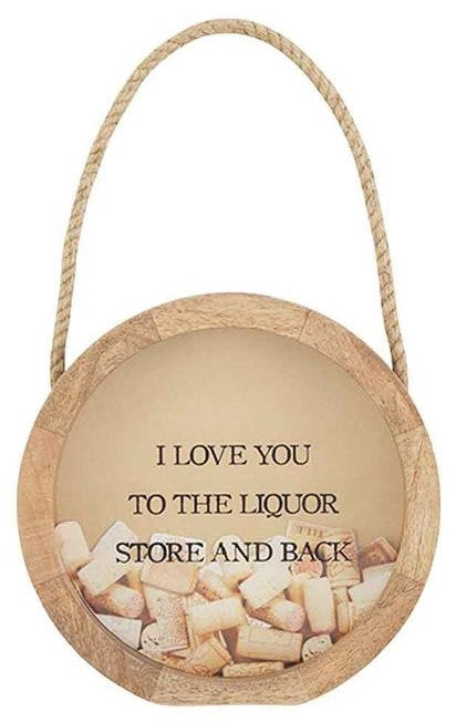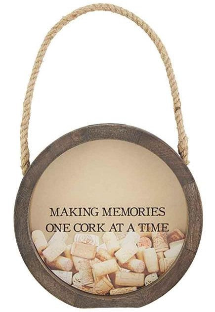 Paulownia trimmed glass cork display box sits or hangs with jute rope. Choose from "I Love You" or "Making Memories" inscription. Sold individually.
