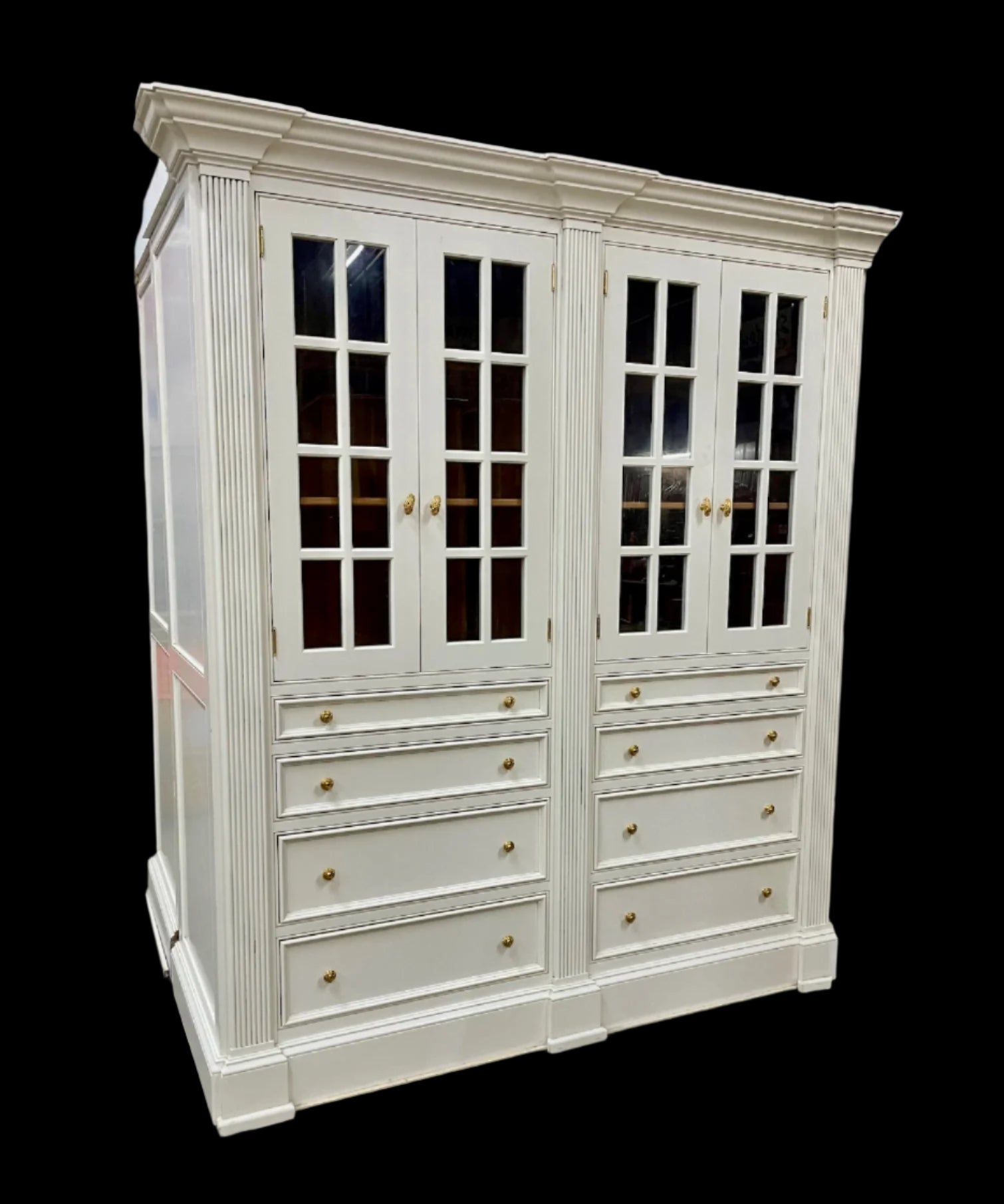 White, solid wood large armoire with cedar wood inside. Includes four shelves, eight drawers, and interior lighting capabilities. This is a beautiful piece, and is in great condition. Please call 570-322-2200 for pick up information.
