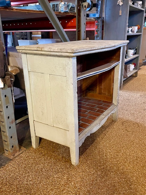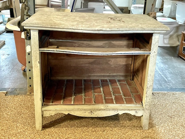 Wood wash stand. This item is solid and sturdy, however it is missing the drawer and doors. Sanded and repainted, this stand would be perfect for storing extra blankets and linens.
