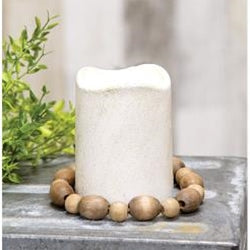 Wooden Round & Oval Bead Candle Ring is a wooden candle ring that features oval-shaped and rounded beads on a jute string. Ring looks great with a variety of pillars or jar candles. Pillar candle not included.