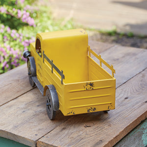 Have fun this spring and decorate with our Yellow Springtime Truck that will add some whimsy to your space. This truck is made of metal and the wheels do turn.